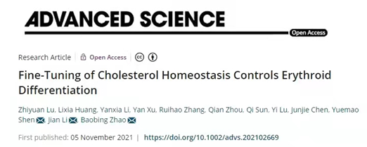 近日,米乐赵保兵教授、沈月毛教授团队联合基础医学院李坚教授团队在Advanced Science杂志(中科院JCR期刊1区,五年IF=16.12)在线发表题为“Fine-tuning of cholesterol homeostasis controls erythroid differentiation”的研究论文,发现胆固醇异常导致贫血,揭示了胆固醇稳态调控红细胞发育的新分子机制。米乐赵保兵教授、沈月毛教授和基础医学院李坚教授为该论文共同通讯作者,米乐·M6(China)官方网站博士生卢志远和基础医学院硕士生黄丽霞为论文共同第一作者,山东大学为第一单位和唯一通讯单位。