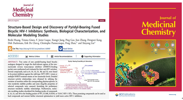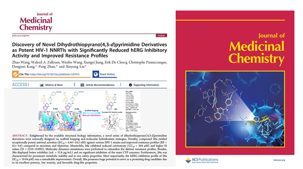 1.论文一:Zhao Wang, Waleed A. Zalloum, Wenbo Wang, Xiangyi Jiang, Erik De Clercq, Christophe Pannecouque, Dongwei Kang*, Peng Zhan*, and Xinyong Liu*. Discovery of Novel Dihydrothiopyrano[4,3-d]pyrimidine Derivatives as Potent HIV-1 NNRTIs with Significantly Reduced hERG Inhibitory Activity and Improved Resistance Profiles.J. Med. Chem.2021, DOI: 10.1021/acs.jmedchem.1c01015.论文链接:https://pubs.acs.org/doi/10.1021/acs.jmedchem.1c01015.