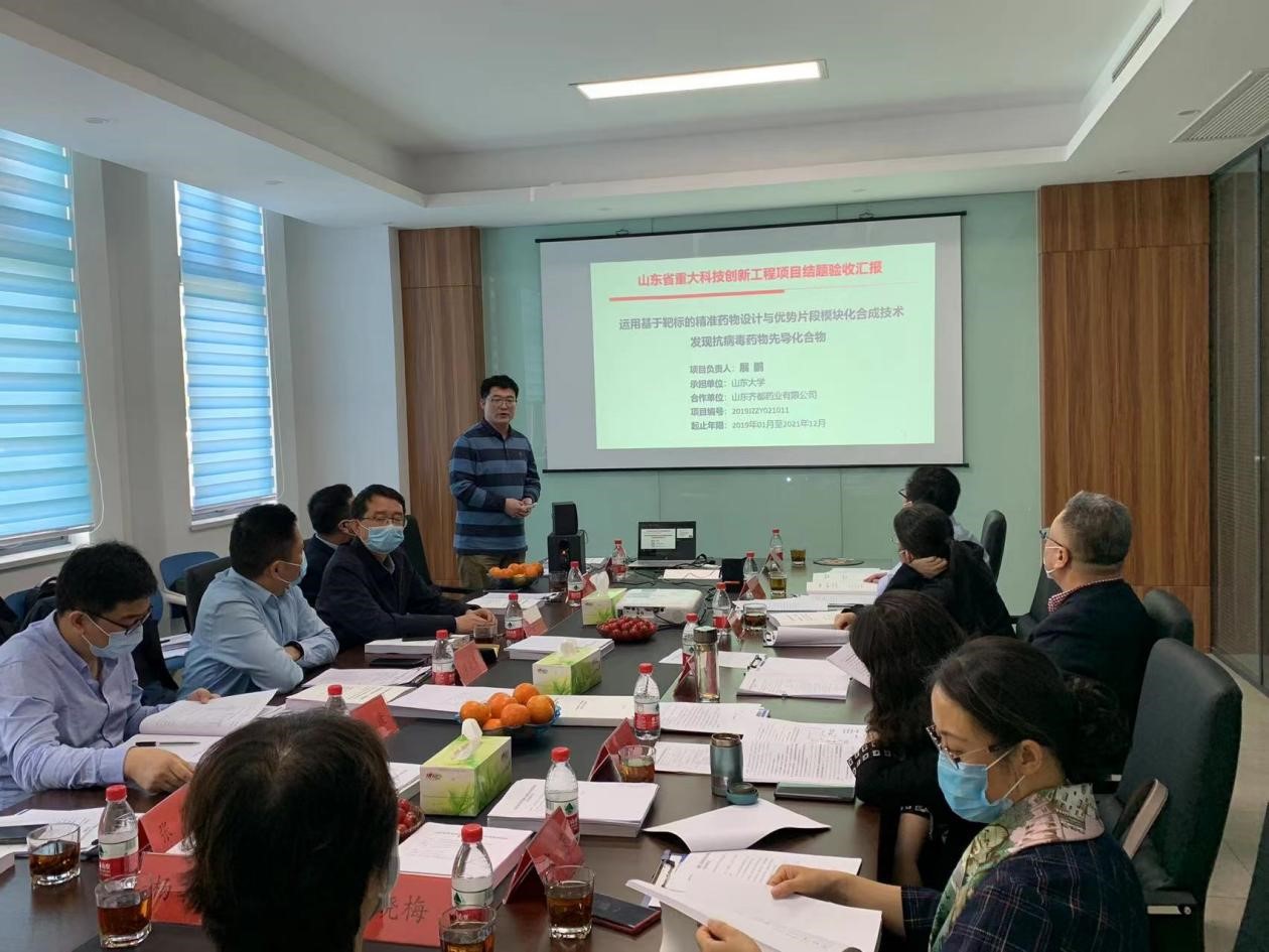 2022年4月23日,由米乐展鹏教授主持的山东省重大科技创新工程项目“运用基于靶标的精准药物设计与优势片段模块合成技术发现抗病毒药物先导化合物”、米乐姜新义教授主持的山东省重大科技创新工程项目“靶向肝癌的RNAi智能纳米递送系统设计与研发关键技术”结题会议在济南顺利完成验收工作。验收专家组由济南大学科技处处长黄加栋教授、山东师范大学化学化工与材料科学学院执行院长李娜教授、山东省药科院院长张岱洲研究员、山东中医药大学米乐·M6(China)官方网站副院长容蓉教授、山东第一医科大学张书平教授、北京兴华会计事务所山东分所注册会计师杨书夏、山东省国土空间生态修复中心高级会计师游晓梅等专家组成,黄加栋教授被选任专家组组长。山东省科技厅、山东大学科研院、米乐及济南齐都药业研究院的领导参加验收会,会议由山东省科技厅社会发展科技处四级调研员尹晓东主持。
