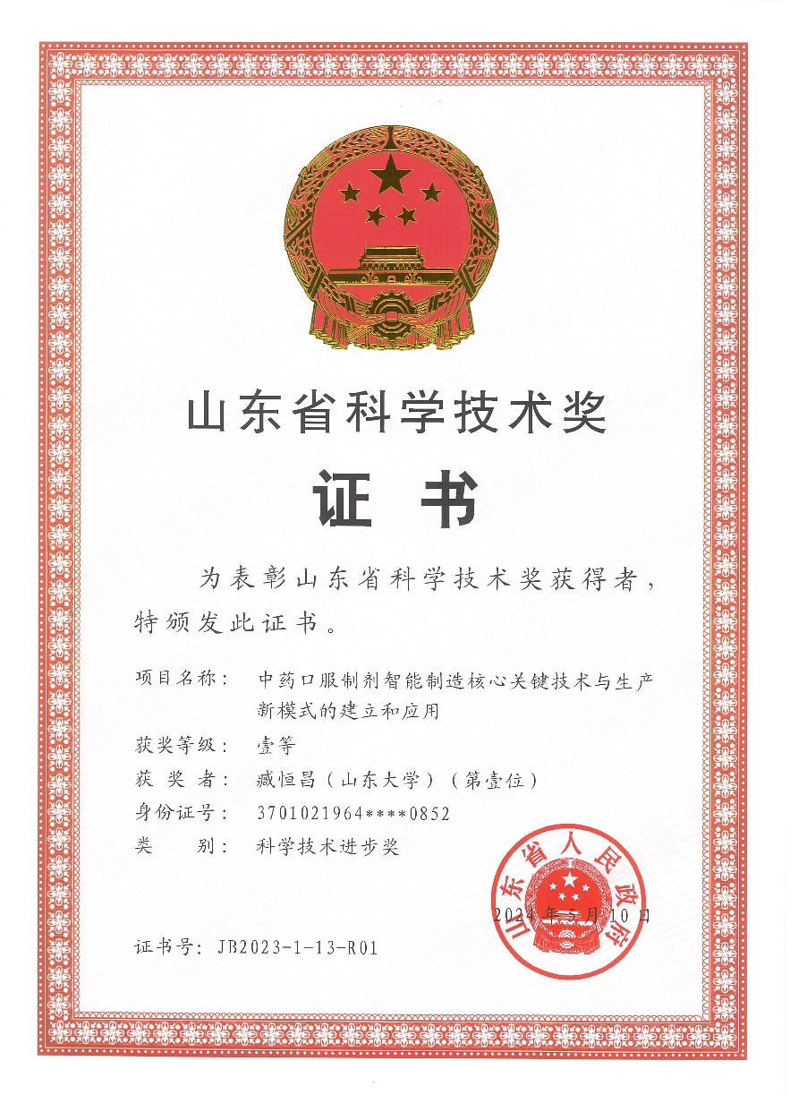 获奖成果为“中药口服制剂智能制造核心关键技术与生产新模式的建立和应用”,该成果同时获2023年度山东省科学技术进步奖一等奖。该成果以米乐为第一单位,由臧恒昌教授团队联合鲁南制药集团、山东沃华医药等10家单位,历经近10年联合技术攻关,在国家重点研发计划、国家重大新药创制专项、山东省重大科技创新工程及重大创新药物产业化开发项目等支持下,开展药物生产智能数据感知与精准控制、智能装备研发及药品质量信息透明化研究。解决了制约我国中药口服制剂智能制造的核心关键技术难题,建立了基于关键质量属性的中药口服制剂智能制造模式。