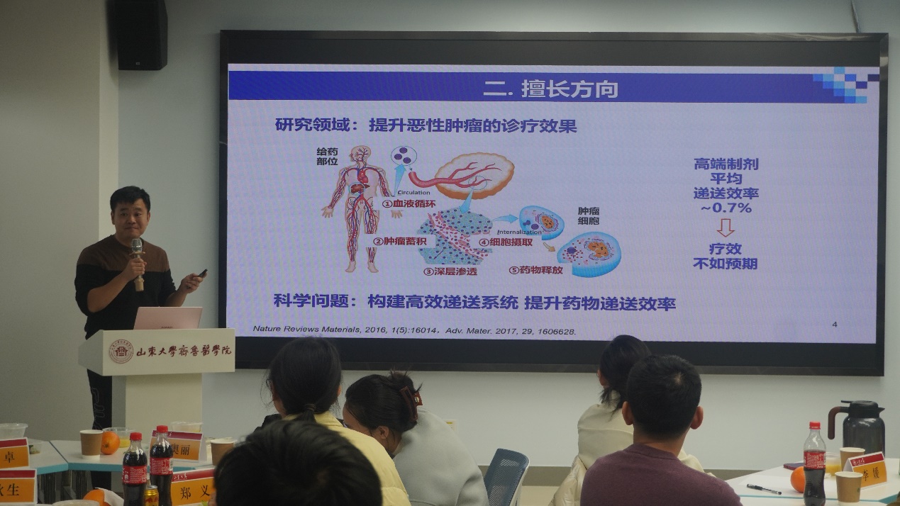 在自我介绍环节,青年教师介绍了所属团队和研究方向,畅谈了个人成长经历,分享了入职以来的感受,并向参会教师发出合作邀请,表达了共同攻克科研难题、促进学科发展的强烈愿望。部分学院行政工作人员介绍自己的工作内容,表示将加强与青年教师的沟通与对接,更好服务学科建设、教育教学和人才培养。