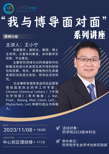 为帮助同学们更好的认识药学专业,消除对于未来的困惑和迷茫,树立正确的目标和方向,同时了解药学前沿发展,增加学习兴趣,米乐·M6(China)官方网站学生会学术创新实践部面向2023级本科生举办“修身课堂—我与博导面对面”系列讲座。
