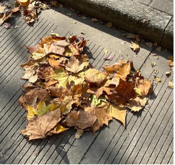 2.本次活动额外设置了惊喜奖品,参与者如提交“堆树叶”(秋)或“堆雪人”(冬)照片,优秀作品将会获得惊喜小礼品一份(实例如下图)。形状不限,大小不限,要求注重创意性和美观性。