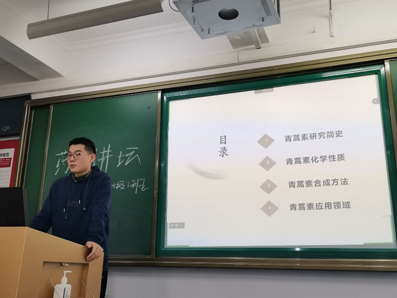 最后,于家琦以青蒿素的发现历史为线索,为大家介绍了抗疟疾药物青蒿素,使同学们深切地体会到了伟人们在科研道路上的艰辛。