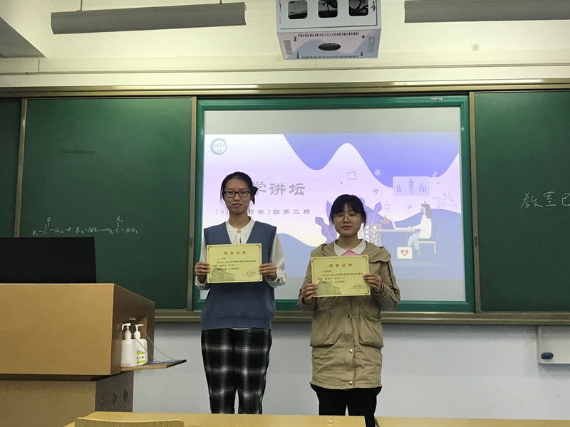 活动最后,经过班级同学的投票,杜雨和吴丽楠分别获得了2020级2班药学讲坛第一期、第二期“先进个人”的称号。此次药学讲坛也在热烈的掌声中落下帷幕。