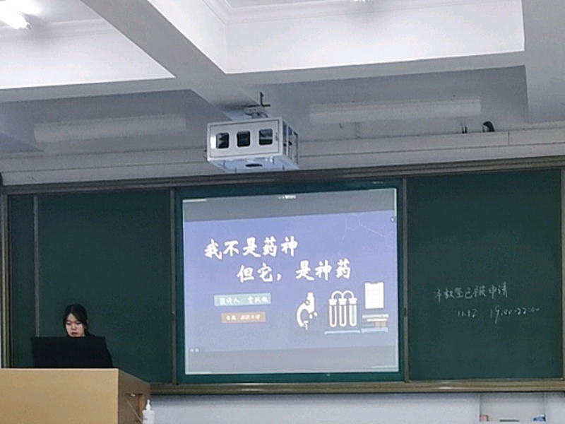 为进一步激发同学们学习药学知识的热情,11月12日,2020级药学1班在趵突泉校区图书馆东教室201开展第四次药学讲坛活动。本次活动由胡珂主持,邀请班主任刘秀美作为嘉宾出席,郝佩熙、贾双旭、陈一诺、朱嘉玉、詹洁、吴雨茜六位同学担任主讲人,全体同学到场参加。