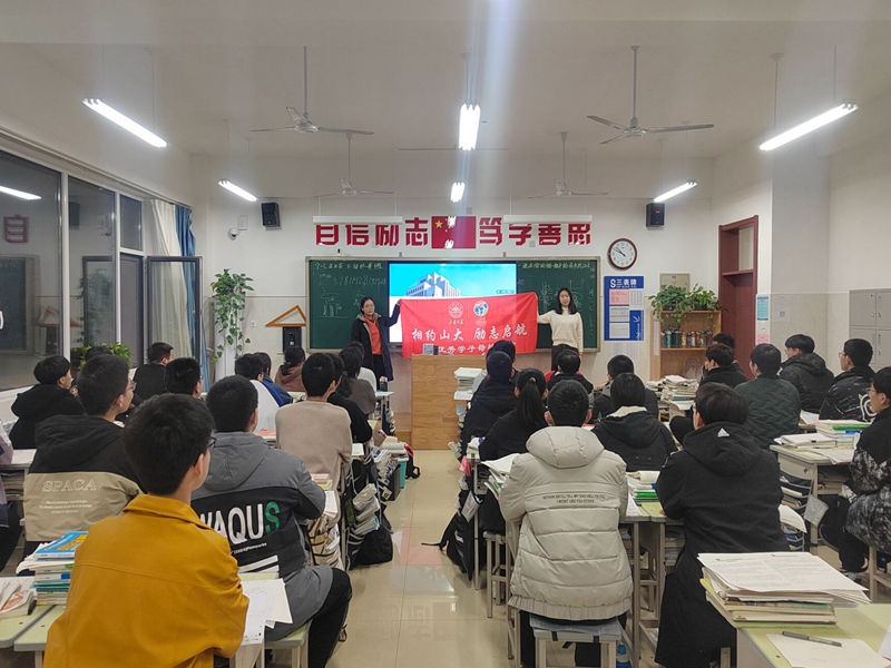 1月17日19时,米乐山东省787“山迎潍来”母校回访队成员王也前往山东省安丘市第二中学,在高三16班和22班开展主题为“筑梦山大,成就未来”的宣讲活动。