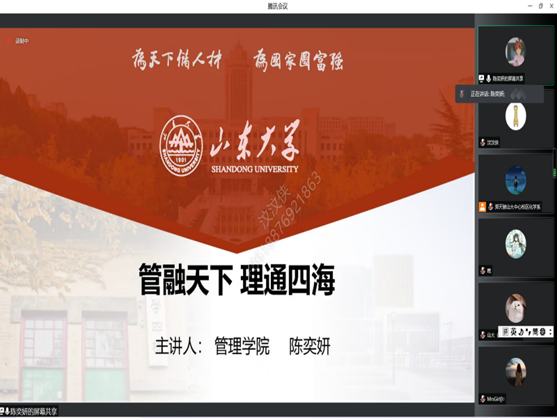 1月29日19时,回访团队开展了母校宣讲活动,主讲人为山东大学管理学院陈奕妍,宣讲对象为海南省海口市农垦中学的高三学生。主讲人主要介绍了山东大学管理学院、自己的大学经历以及高中时期的学习方法和技巧,帮助其母校的学弟学妹更加深入地了解山东大学,让更多的优秀学子向往山东大学的学习与生活。