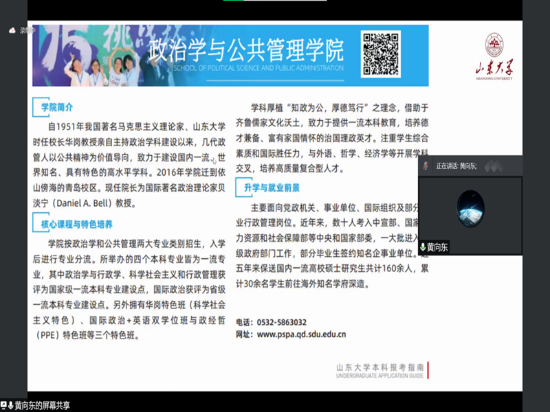 紧接着,黄向东和杨宗汉分别介绍了山东大学青岛校区和威海校区,为同学们分析了专业现状、前景和就业形势。