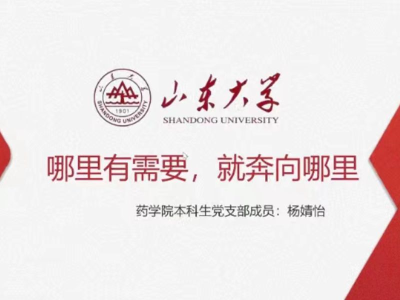 牟虹飞结合自身专业,向各位党员分享了原中国医学科学院院长、著名医学科学家、病毒学专家顾方舟的故事,以纪录片的形式,展示了1957年起“糖丸爷爷”为研究脊髓灰质炎减毒活疫苗所克服的困难和作出的创造性技术成果。顾方舟以身试药的奉献精神值得党员学习,其“我一生做了一件事,值得,值得。孩子们快快长大,报效祖国”的临终嘱托令人感动、深思;高树聚焦脱贫攻坚,选取黄文秀和张晓娟两位基层干部的扶贫事迹,表现了基层党员的人格力量和责任担当;杨婧怡以“哪里有需要,就奔向哪里”为主题,展现志愿服务的优秀集体风采,山东大学研究生支教团坚守新疆伊宁县,爱岗敬业、乐于奉献的经历,以及山东大学附属医院援鄂医疗队护士王鹏、医生郝学喜一线抗疫的故事,无不催人奋进;王湘月选取“战地记者”、“扶贫书记”、“环卫工人”、“快递小哥”四个岗位的党员事迹,以小见大,表现出广大优秀共产党员扎根基层、率先垂范、无私奉献、爱岗敬业的优秀品质。
