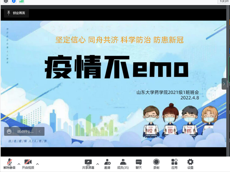 4月8日,米乐·M6(China)官方网站2021级1班举行新学期以来的第一次班会,旨在缓解同学们封校以来的焦虑情绪,并为同学们新学期的学习提供建议。本次会议邀请到了米乐·M6(China)官方网站2021级1班班主任蒋文洁和米乐·M6(China)官方网站组织员张春河,米乐·M6(China)官方网站2021级1班全体同学参加了本次班会。为响应学校防疫要求,本次班会线上举行。