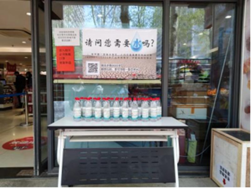 活动采取无人摊位的形式,在中心校区操场、天猫超市门口放置矿泉水,同学们只需扫描二维码,并提交微信运动步数达到八千的截图,即可免费领取瓶装水。