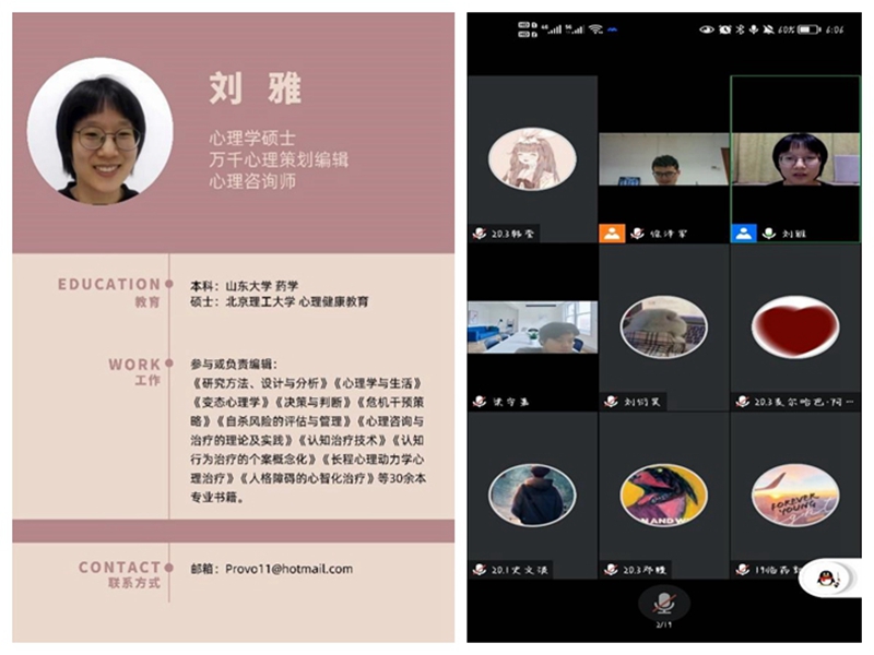 为缓解校园封闭管理以来同学们的心理压力,4月25日晚,米乐·M6(China)官方网站举行线上心理宣讲会。本次会议由2020级3班主办,邀请了万千心理责任编辑、北京理工大学心理学硕士刘雅担任主讲人,班主任徐泽军、辅导员刘晓燕作为嘉宾出席,米乐·M6(China)官方网站全体本科生参加会议。