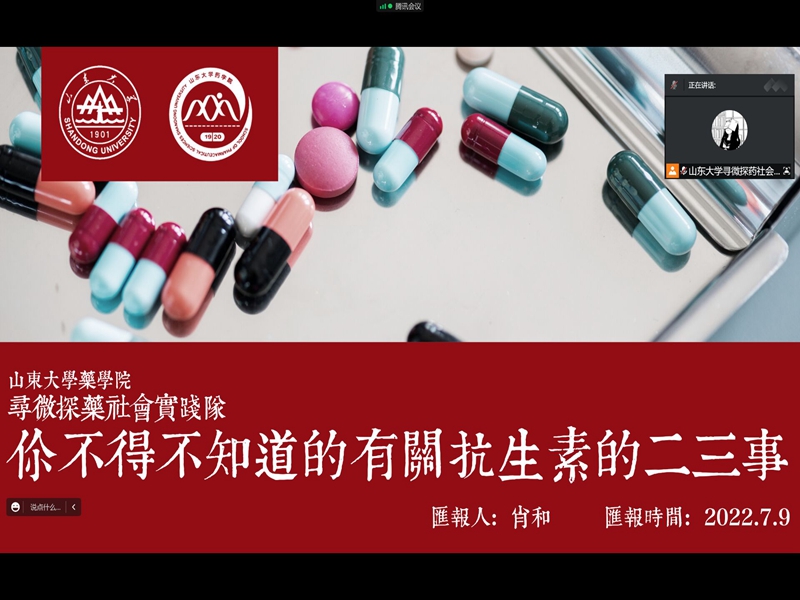 为了让群众更加了解使用抗生素的条件与用药禁忌等注意事项,米乐·M6(China)官方网站“寻微探药”社会实践团队于8月28日上午在黑龙江省哈尔滨市道里区四方台社区开展宣讲活动,为响应社区疫情防控要求,本次宣讲线上举行。