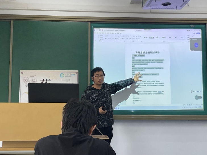 首先,刘锴芃讲解了分析化学的考试重点,他将重点知识按章节分为四部分:数据处理及有效数字运算、滴定法分析概论、酸碱滴定法、配位滴定法。然后,他借助PPT,详细讲解了每一章节的知识点和典型例题。同时,刘锴芃提醒同学们备考时注意考试范围,争取取得好成绩。