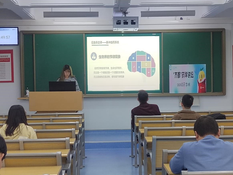 随后,丁柯文以《生命之门——脉冲给药系统》为题,从脉冲给药系统的定义入手,讲述了四种脉冲给药系统的释药机制、脉冲给药系统的研究历程和脉冲给药系统对药剂学的应用,深入浅出,清晰明了。