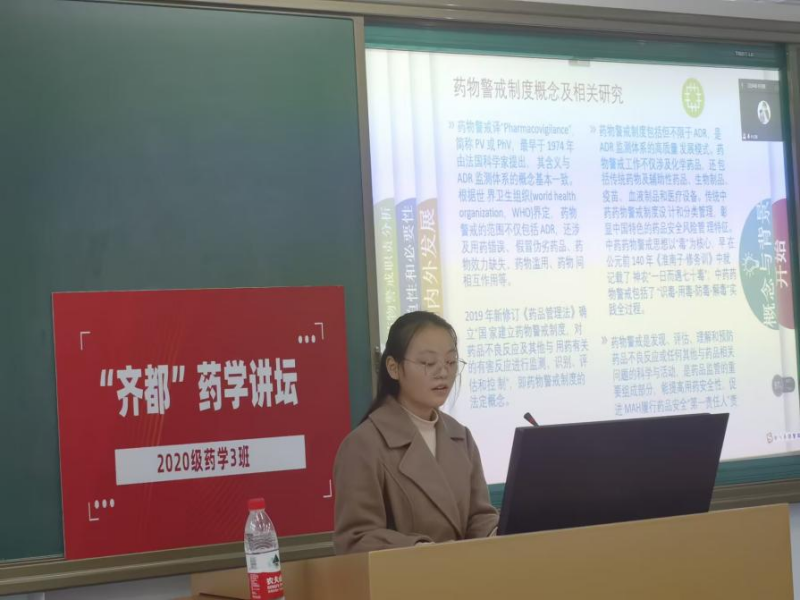 紧接着,邓鳗以之前所学的药学科学进展的相关知识为基础,带领同学们一起回顾了有关药物警戒的基本概念、工作内容、注意事项,以及目前我国药物警戒存在的一些问题和解决措施,让大家对药物警戒这一制度有了更深入的了解。