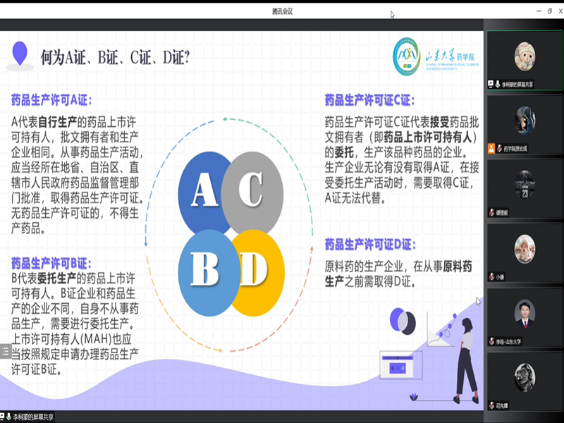 首先,谭理毅结合具体给药系统为同学们讲解了口服结肠靶向给药途径,让同学们看到其优势。接下来,李柯蒙从制度内涵、国外先例、引入背景、我国现状四个方面向同学们详细讲解了药品上市许可人制度,为同学们今后参与药物研发提供了相关背景知识。