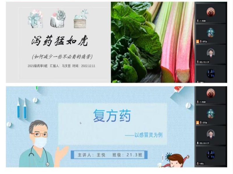 12月11日15时,2021级药学3班于线上举办第六期药学讲坛。本次药学讲坛由张晓畅、许宁钰、马文哲、王悦四位同学担任主讲人。米乐·M6(China)官方网站2021级3班班主任李连及特邀嘉宾安徽中医药大学马晓东担任评委进行指导点评。2021级药学3班全体同学参会。