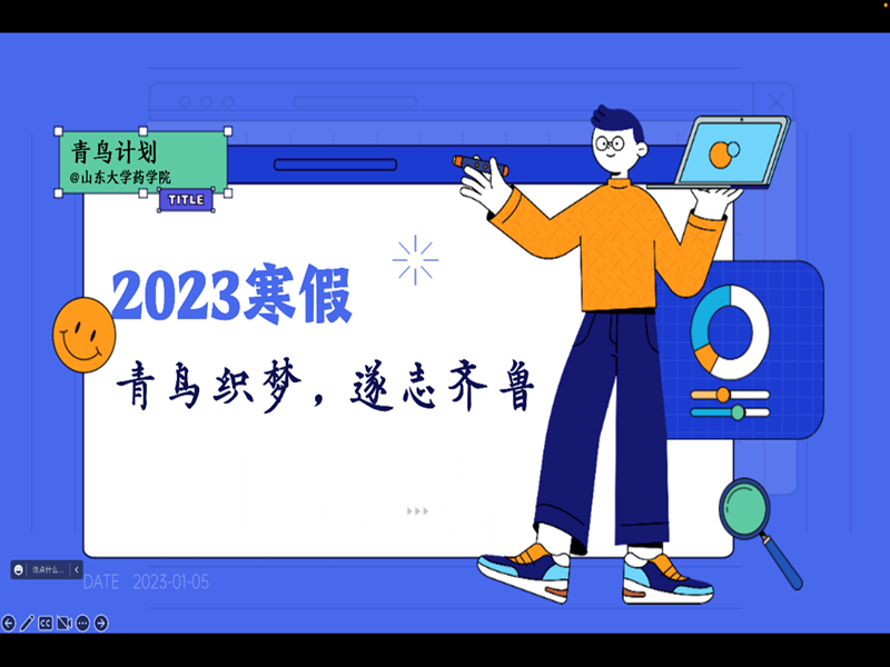 1月6日,为明确寒假社会实践开展方向,细化分配实践任务,“青鸟织梦,遂志齐鲁”社会实践队开展第一次线上研讨会。“青鸟织梦,遂志齐鲁”社会实践队队长许宁钰担任主持人,团队所有成员均准时参会。本次会议主要从实习、宣传和创新三个方面进行讨论,多方向并行。