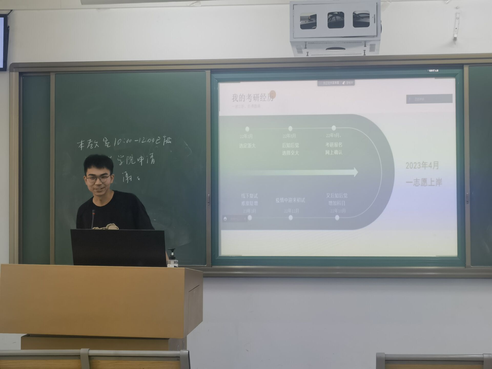 首先,高晗和赵海洋以自身考研经历为切入点,提供了专业课、英语等学科的复习方法和学习模式,分享了多种学习渠道和考研资源,有效地解答了同学们的困惑。随后,孙九博通过介绍考研院校的实验室情况、宿舍情况和导师信息等内容,让同学们对考研择校有了更清晰的认知和更明确的目标;林心彦则从学硕的优势、考研情况等方面进行分析,为同学们提供了诸多有价值的建议。