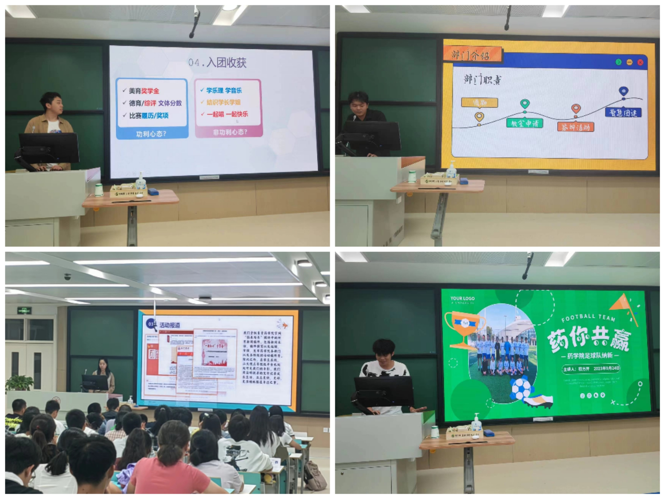 接着,生活权益调研部、学术创新实践部、志愿服务工作部、社团工作部、药闻天下宣传部、秘书处、文韬武略活动部等部门和米乐·M6(China)官方网站足球队、合唱团分别进行宣讲。在宣讲过程中,各部门及学生组织各显其能,用热情的面貌和幽默的语言从部门介绍、人员组成、工作成果等方面展示了部门的别样风采。宣讲现场氛围火热,新生反响良好。