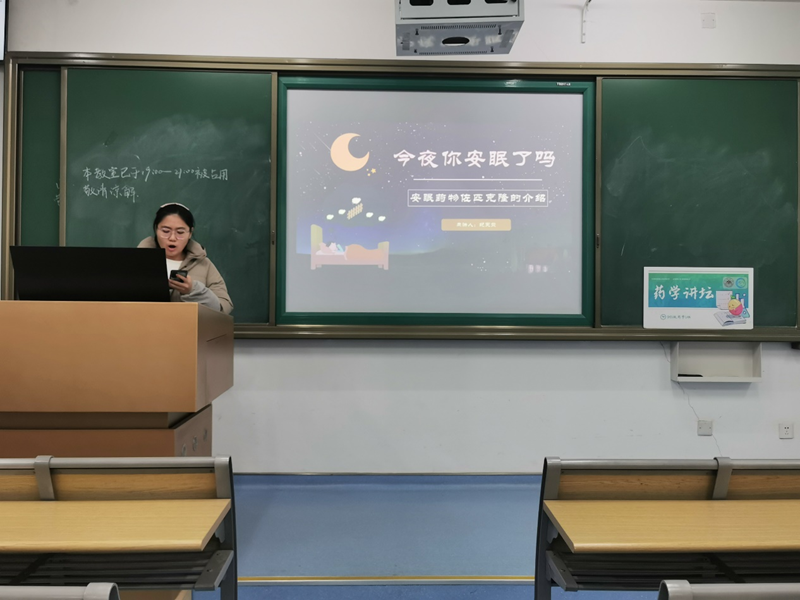 首先,纪雯萱以《安眠药佐匹克隆的介绍》为题,详细介绍了安眠药的发展历程以及第三代安眠药佐匹克隆的发现过程及目前的临床应用。穆文波以抑郁症为切入点,阐述了抑郁症的发病机制假说,并简要介绍了吗氯贝胺、氟西汀等抗抑郁症药物。