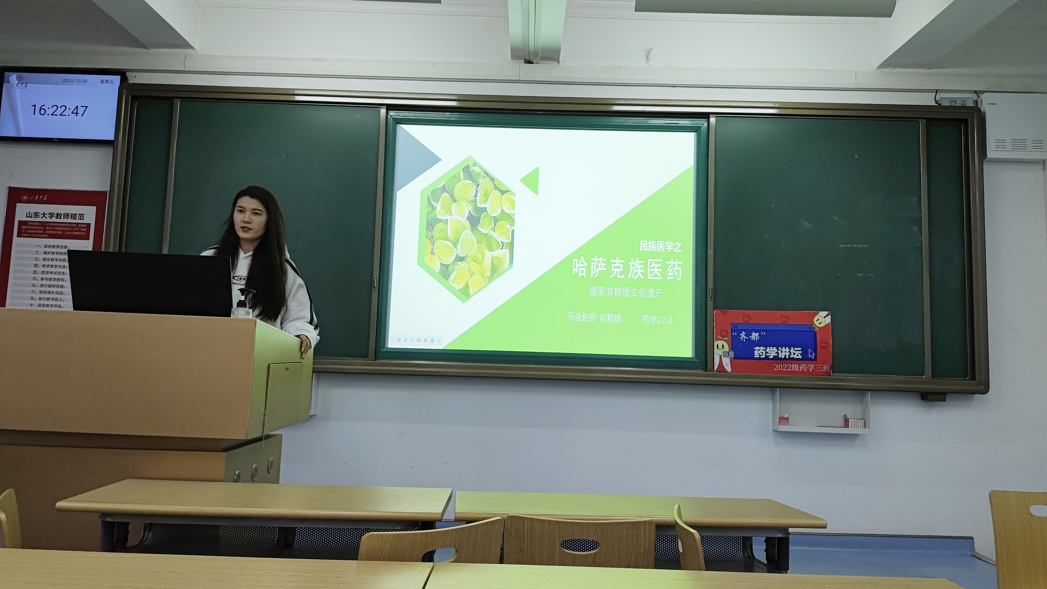 12月8日下午4时,米乐·M6(China)官方网站2022级3班于趵突泉校区图西202教室举行了第五期药学讲坛。本次药学讲坛由张晓晴主持,吴佳楠、向蓉、马合帕丽·帕孜里江、许涵、闫竞如、严韵、杨雨萱七位同学进行了与医药相关的演讲,班主任马朝点评。