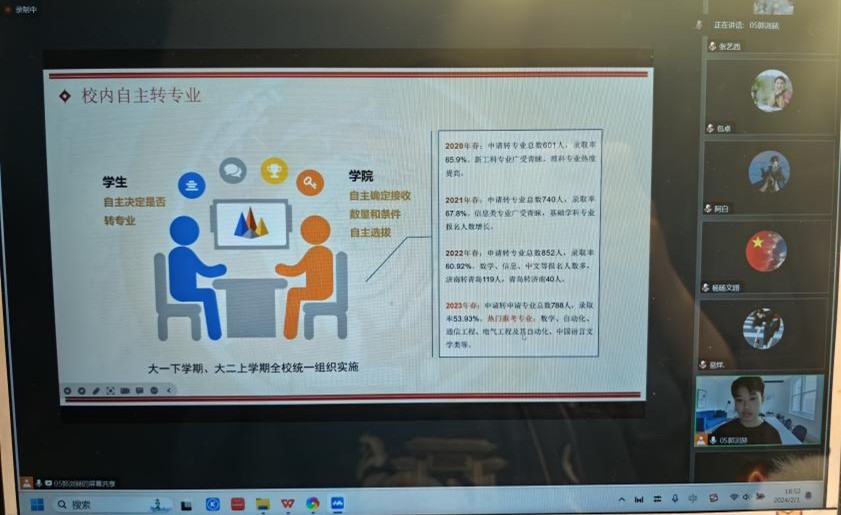 接着,来自齐鲁交通院的郭浏赫介绍了山东大学“五育并举、拔尖引领、因材施教”的人才培养模式,表示每位山大学子都能在此徜徉于学术之海。他还介绍了山东大学紧跟时代前沿的先进教学教材与设施,并以优秀学子风采为例介绍了山大学子的优良品质。随后,来自物理学院的赵鑫详细介绍了本年度招生专业和报考要求及方式,并再度欢迎同学们报考山东大学。
