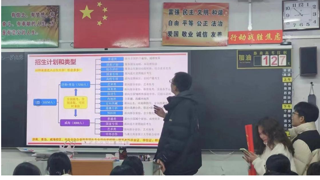 首先,史凯文依次介绍了山东大学的办学历史、学科建设以及招生培养政策,并着重介绍了强基计划招生政策与综合评价,鼓励同学们积极报考山东大学。
