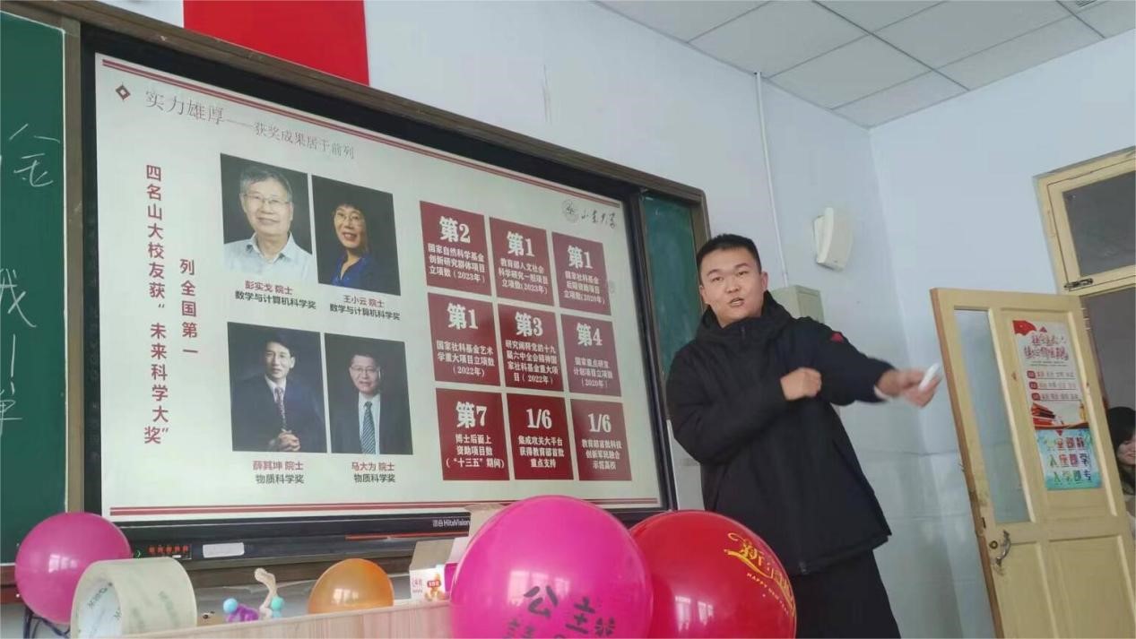 在宣讲过程中,李耀鹏重点讲述了山东大学六大学堂的特色培养、三地校区的不同美景、文史发家的优势历史等特色,充分展现了山东大学的魅力。