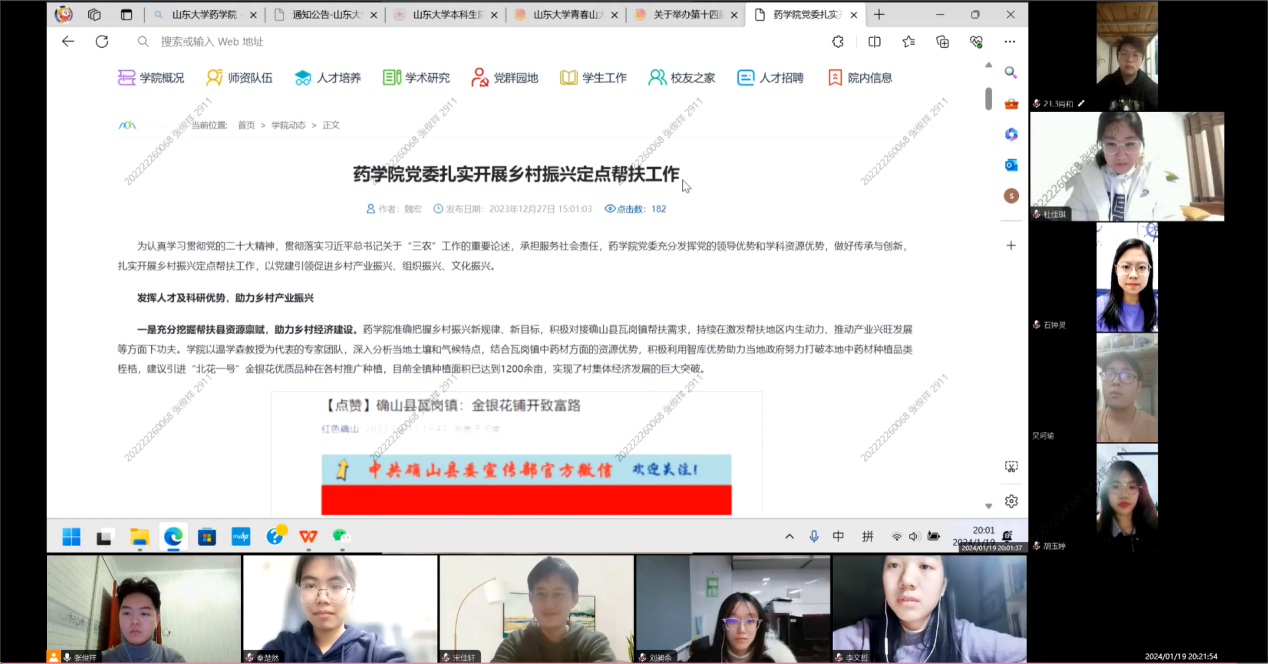 为深入了解国家乡村振兴政策以及学校对点帮扶对象确山县的具体情况,明确本次社会实践的主要目标、内容与流程,1月19日晚20时,米乐·M6(China)官方网站“爱在确山,药振乡村”社会实践队于线上召开了前期筹备会议。本次会议由队长张俊祥主持,社会实践队全体成员悉数到会。