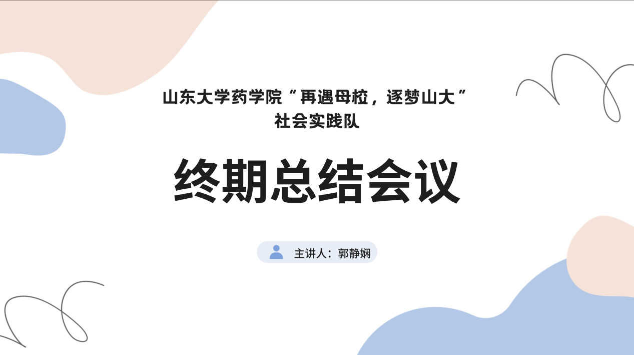 首先,队长郭静娴就本次母校回访社会实践活动的开展历程及取得的成果进行了总结:团队顺利完成了五所中学的回访工作,并为每所中学举办了宣讲会;宣传了山东大学的独特风貌,同时也为母校的学弟学妹带去了关怀与鼓励。此外,郭静娴对每位成员的辛勤付出表示肯定,赞许了团队成员在本次社会实践活动中认真负责、踏实勤恳的工作态度,对大家给予的理解与支持表示感谢。