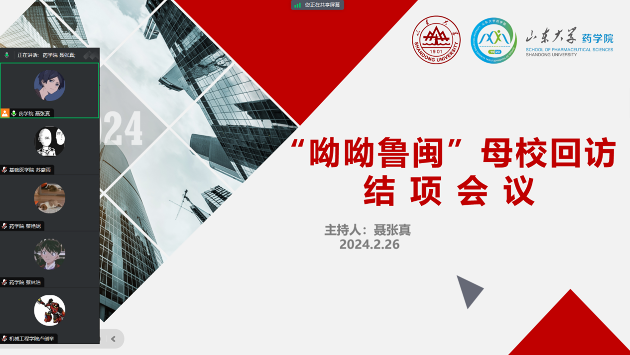 21时30分,会议正式开始。首先,聂张真对队伍的整体回访工作作出了评定。队伍共计对6所中学开展了高质量宣讲活动,充分展现了山大的特色与优势,对母校同学的复习备考提供了经验与鼓励,成效显著。