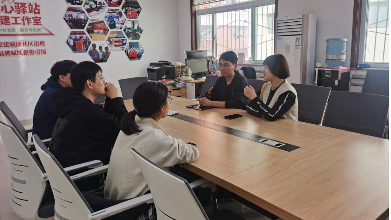 在线下对接之前,秦楚然已经在线上与刘艳书记取得了联系,共同交流了可开展的志愿活动项目。进一步对项目策划进行细化后,为了更加高效具体地完成对未来志愿服务的计划,宋佳轩和秦楚然前往了科技街社区党群服务中心与刘艳书记、金立邦副书记进行线下对接。