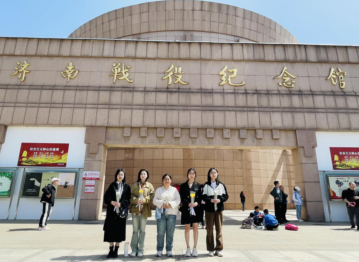 随后,团队成员们在纪念馆门口集合,一同参观了济南战役纪念馆的陈列展厅。通过展厅内的历史文物和照片,同学们深入了解了济南战役的详细过程和它对于推动全国解放战争进程的重大意义,也感受到了革命先烈们励精图治、卧薪尝胆的奋斗精神。接着,赵琦带领团队在革命烈士纪念塔前进行了默哀和献花仪式,对英烈表达了缅怀和崇高的敬意。