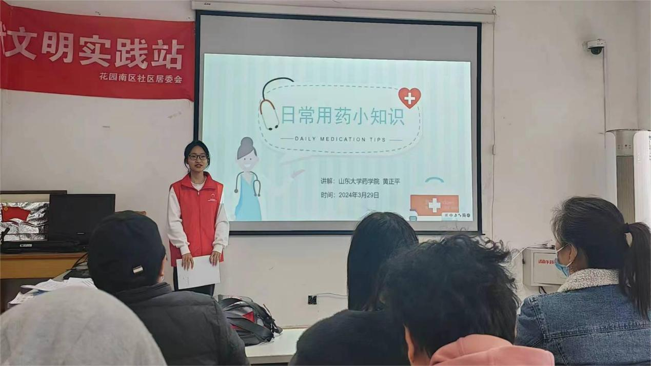 活动伊始,同学们在室内进行了宣讲。宣讲内容涵盖了春季保健知识、生活常用药知识以及医保政策小科普等多个主题。宣讲过程中,同学们结合自己的专业知识,通过生动有趣的案例,向社区人员传授了实用的健康知识和用药常识。此外,同学们还开展了垃圾分类知识竞赛,现场人员积极参与,现场活动气氛良好。