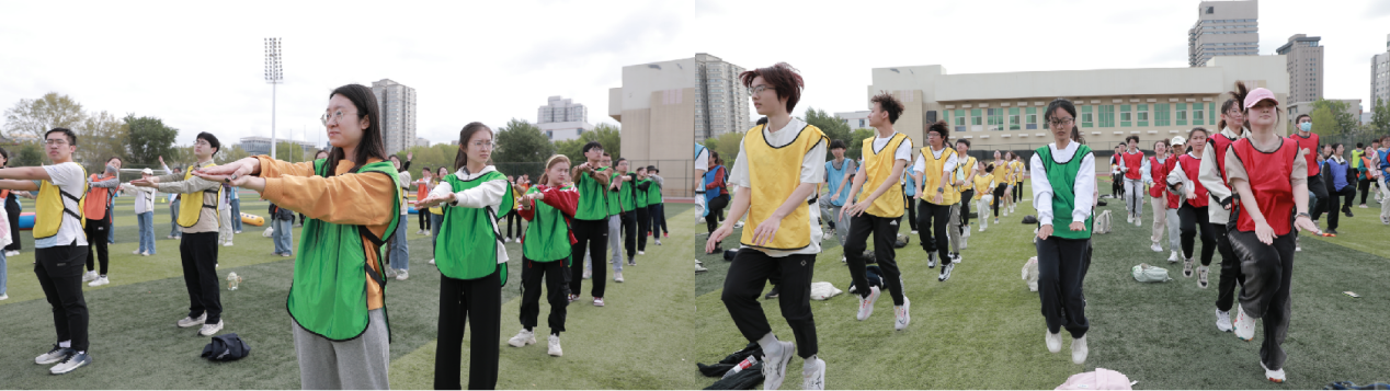 比赛开始前,素拓师带领全体参赛师生一起开展热身运动,为接下来的比赛项目做好充分准备。