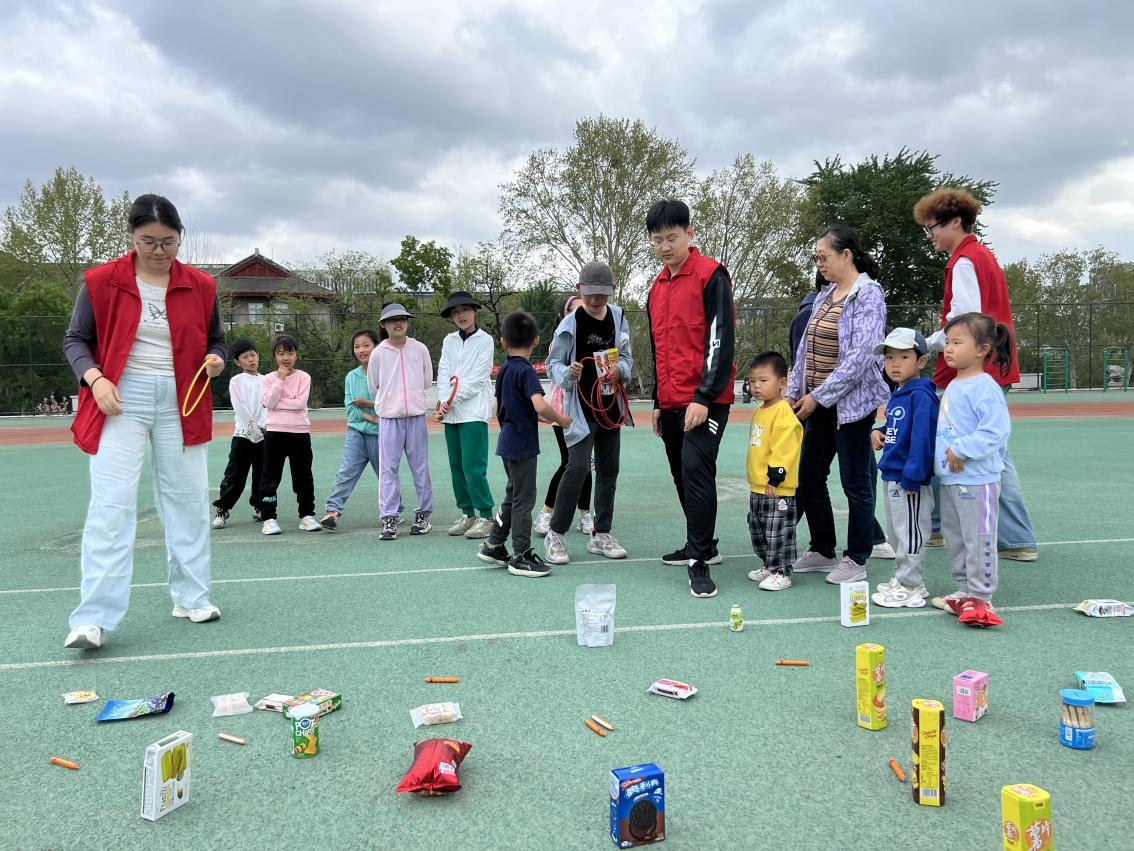 亲子项目中,参赛教职工带领子女一同参加,套圈游戏进一步加深了亲子感情。
