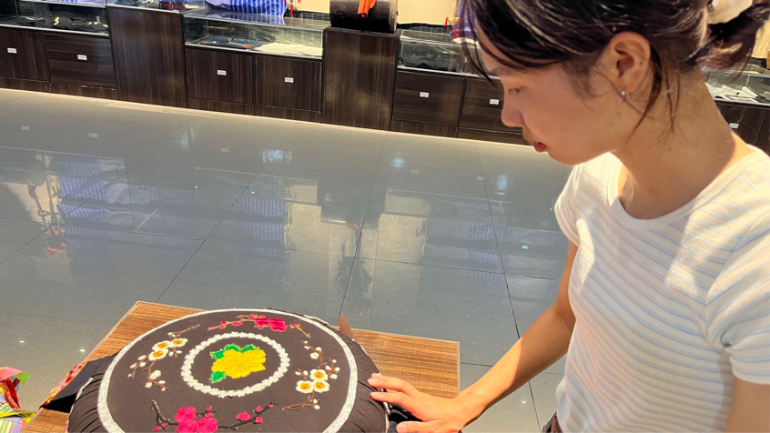 随后,她走进少数民族服饰展览区。这里陈列着多件珍贵的民族服饰,琳琅满目,这些服饰不仅色彩鲜艳、图案精美,更承载着深厚的文化底蕴,每一针每一线都诉说着古老的故事,让人仿佛穿越时空,聆听历史的回响。