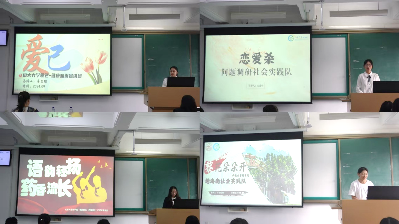 本次答辩会分为团队答辩和个人答辩两部分。在团队答辩中,不同队伍关注社会热点,围绕多个立项主题取得了丰硕的实践成果。爱己–健康知识宣讲团关注女性两癌的筛查与预防,科普HPV相关知识和疫苗防治的重要性;“寻药乡野,奇方可传”实践队结合专业知识,调研并科普中医药知识。“语韵轻扬,药香流传”口述史采集团通过采访老教授,探索并记录米乐·M6(China)官方网站历史;“恋爱杀”实践队调研大学生恋爱面对的问题并进行科普宣讲,为大学生健康恋爱关系保驾护航;“黎花朵朵开”实践队对接山东与海南两省,致力于传承并发扬黎族非遗文化;诉求导航智囊调研团聚焦各大高校大学生群体,呼吁社会重视大学生合理诉求。