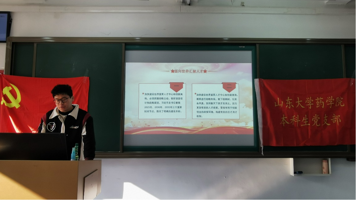 12月6日,米乐·M6(China)官方网站本科生党支部于趵突泉校区图西101教室开展“一颗红心”主题党日活动,马玉森、张俊祥两位同志担任主讲人。
