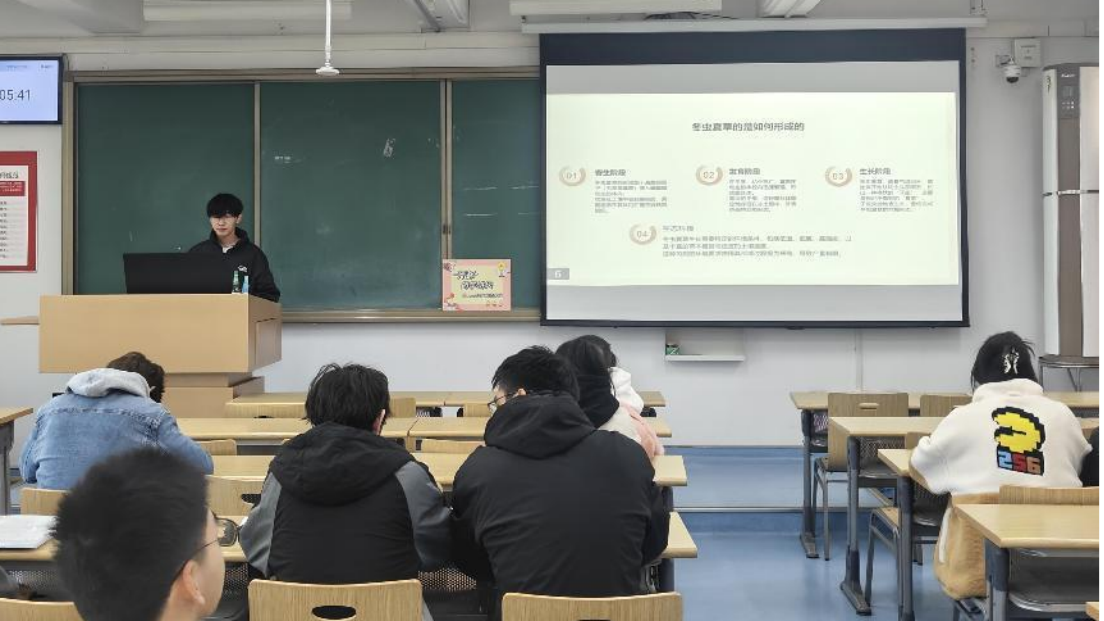 第五位演讲人张佳宁演讲的题目是《虫药:天地之间的神秘力量》,他介绍了虫药悠久的历史,繁多的种类,各自独特的功效。最后讲述了虫药具有广阔的未来前景,在生态系统中也至关重要。