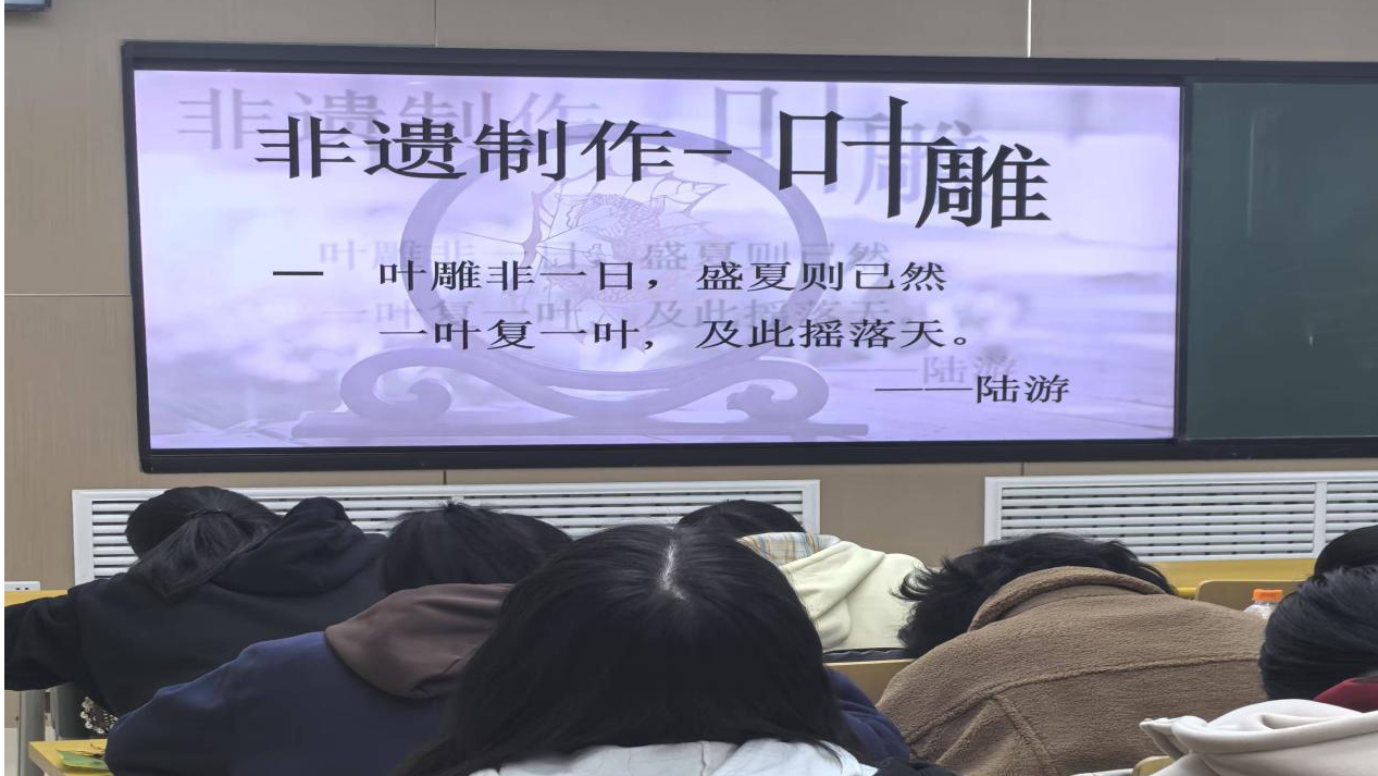活动期间,同学们共同欣赏济南叶雕非遗传承人都婉丽老师的佳作。其作品中,每片叶子上的图案皆栩栩如生,让同学们赞叹不已,也激发了他们的创作热情。大家纷纷拿起刻刀,或临摹经典,在一笔一划中体会非遗技艺的精妙,让传统叶雕焕发出新的活力。