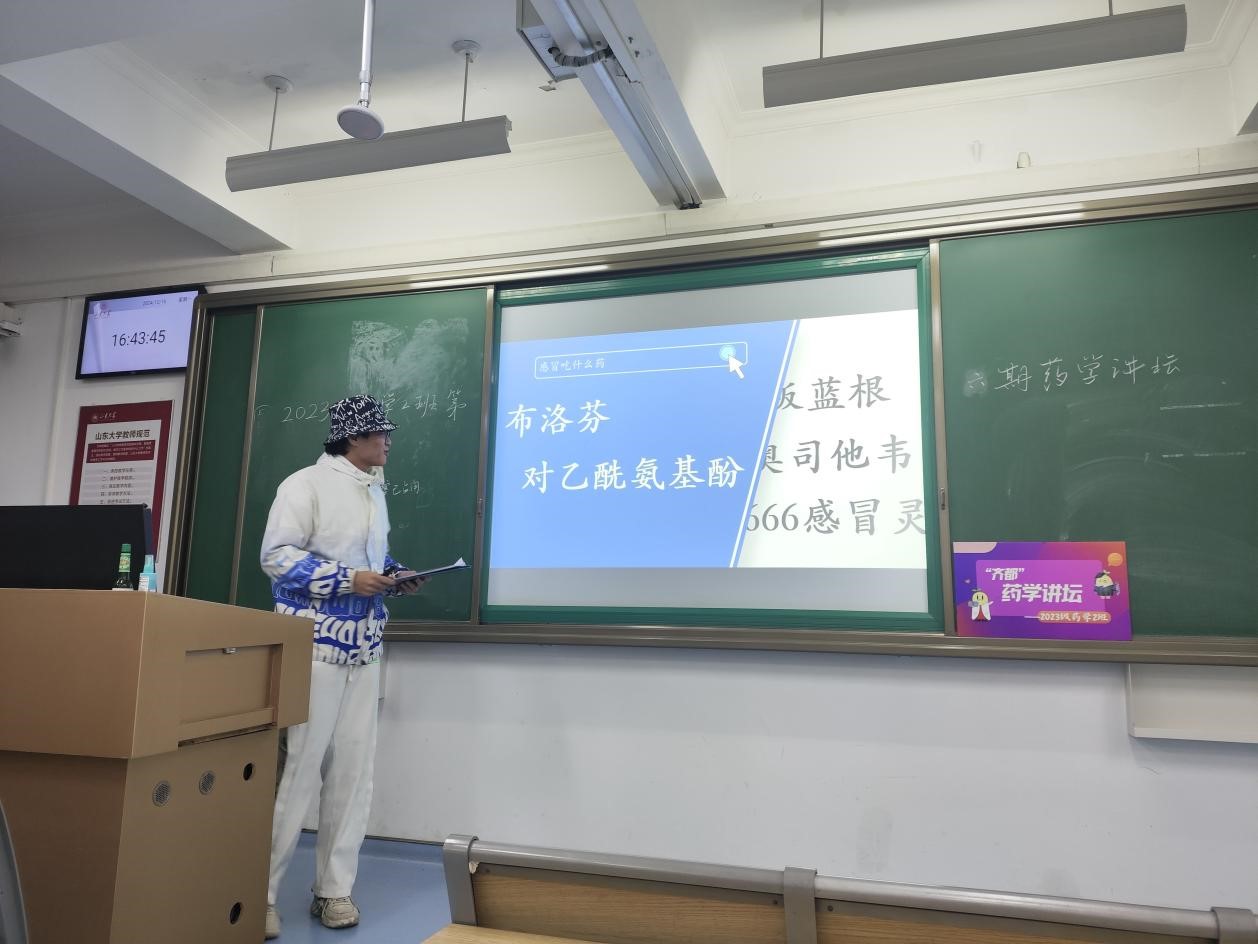 12月23日14时,米乐·M6(China)官方网站2023级2班在趵突泉校区图东301教室举办第六期药学讲坛。此次讲坛由生涯委员邓洁主持,七位同学围绕医药卫生主题进行了科普,分别是杨双宁、杨文俊、张家一、姚志威、周芸冰、朱泉月、朱毅杰。由班主任李媛和李卓然、徐苗苗、郭美琪、Sameer、郑成祖、王玲玲、李延霞等研究生和博士生担任评委并进行点评。