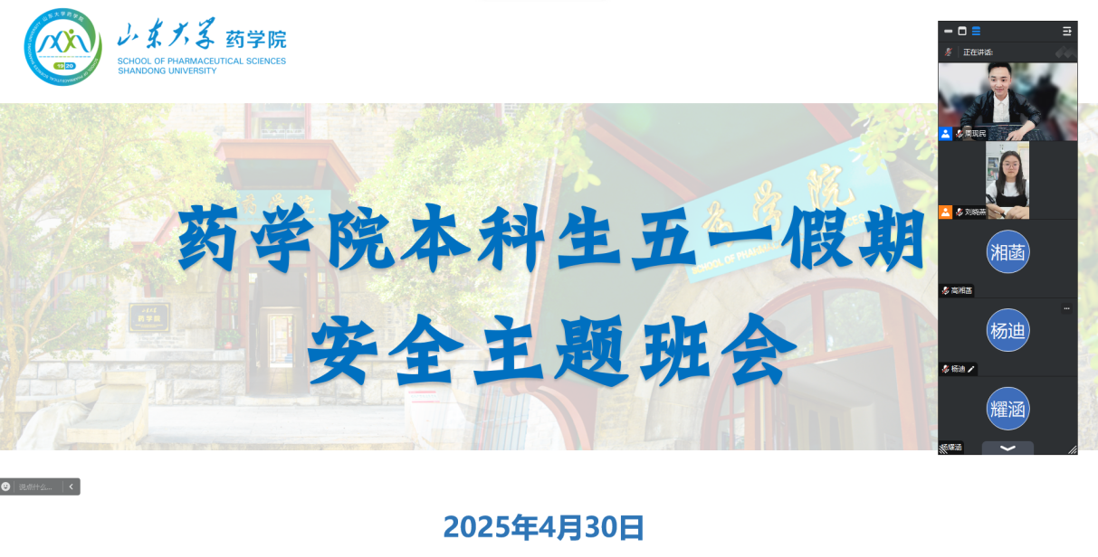 为进一步做好五一假期学生安全管理工作,切实增强学生的安全防范意识,4月30日中午,米乐·M6(China)官方网站在线上召开本科生五一假期安全主题班会。会议由辅导员周现民、刘晓燕主讲,米乐·M6(China)官方网站全体本科生参加。