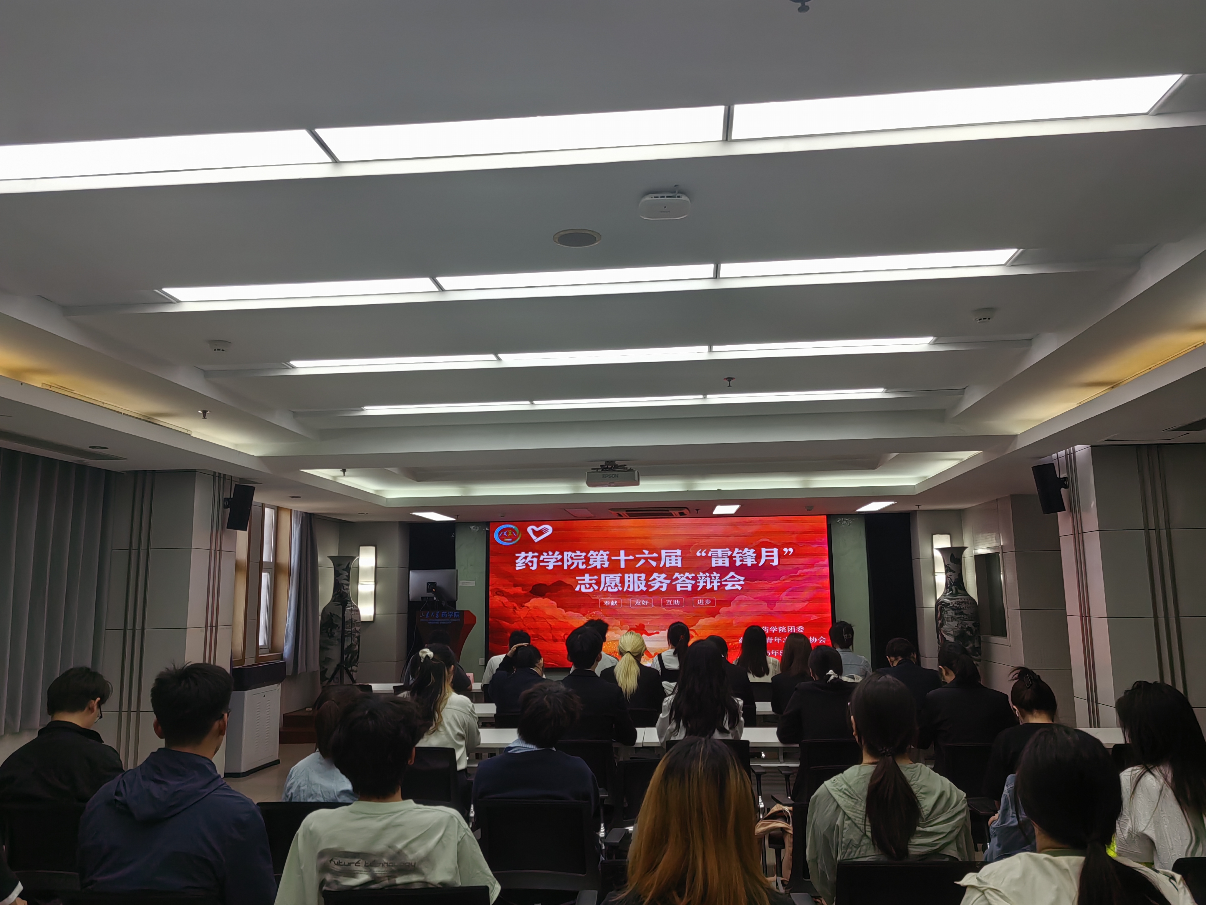 在答辩现场,17 支参赛队伍依次登场,以多样的形式展示志愿服务成果。“温暖扬帆,药爱启航”志愿服务队聚焦孤独症儿童的心理健康,定期为孩子们送去温暖与祝福;“药暖春辉,情系耆老” 志愿服务队深入社区,为老年人普及健康用药知识,送去温暖关怀;岐黄先锋队结合专业特色,开展中医药文化宣传活动,弘扬传统医学魅力。各队伍用生动的案例、详实的数据,展现了在“雷锋月” 中践行志愿服务精神的积极行动与显著成效。