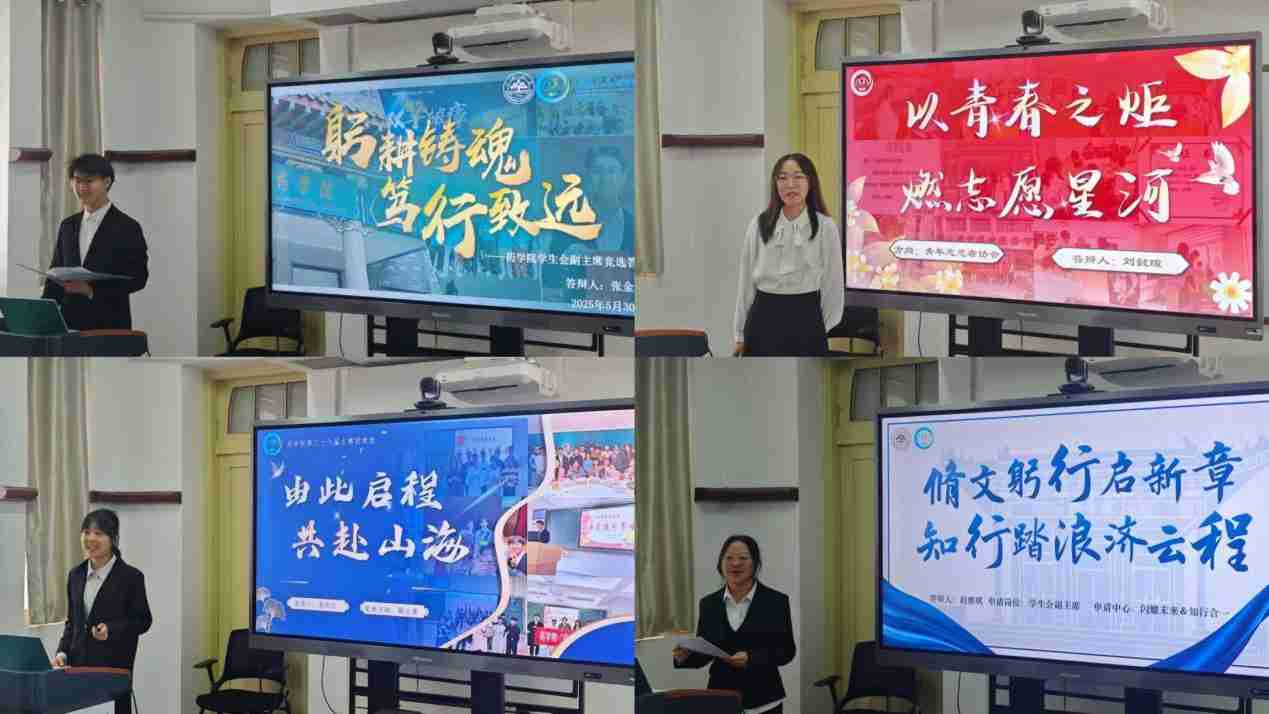 本次答辩共有12名本科生候选人参与。答辩过程中,各位候选人严格按照既定流程,依次从个人简介、竞选理由、工作设想等方面进行系统阐述。他们详细回顾了在学生工作中所积累的经验、取得的成果以及引发的思考,同时结合过去一年在学生会的实际工作经历,对各个部门的发展现状、存在问题进行了客观分析。