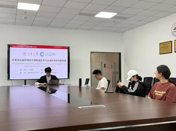 微生物与生化药学专业博士生邓建群分享了“肝素类抗凝药物的生物制造技术与合成体系的创新构建”的学术报告,围绕肝素类药物的酶法合成分享博士期间研究成果,并向同学们分享了论文撰写、投稿心得等方面的建议,切实帮助同学们解决科研过程中遇到的难题。