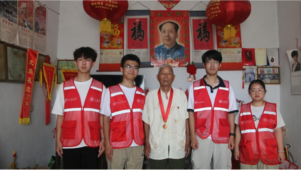 7月6日下午,实践队抵达半堤镇大徐行政村,对当地的“板报爷爷”李永祥和“三八红旗手”苏秀芬展开了采访。队员们在采访中了解到,现年近九旬的李永祥自入党以来一直保持着自学党史理论的习惯,并通过多种方式来宣传党史,用实际行动践行共产党员的初心和使命。自1949年起,他便通过自费的墨水与粉笔向村民们宣传党的政策与方针。他所绘制的黑板报内容紧贴时代脉搏,早期重点宣传毛主席的文章,随着时代发展,逐渐深入宣传领导人思想以及党中央的战略部署。方寸黑板,成为了在乡村记录时代发展、传递党的声音的窗口。李永祥也凭借多年如一日的坚持与付出,成为了党在农村地区的宣传先锋,为乡村的精神文明建设和党的政策普及贡献了重要力量。